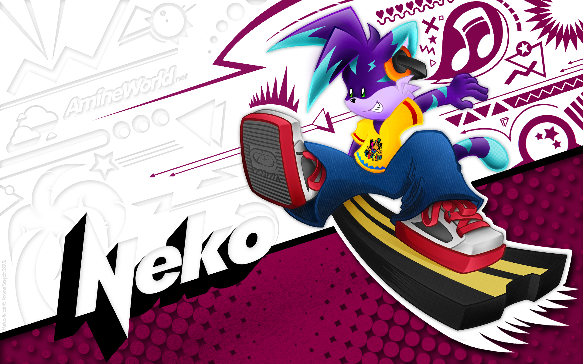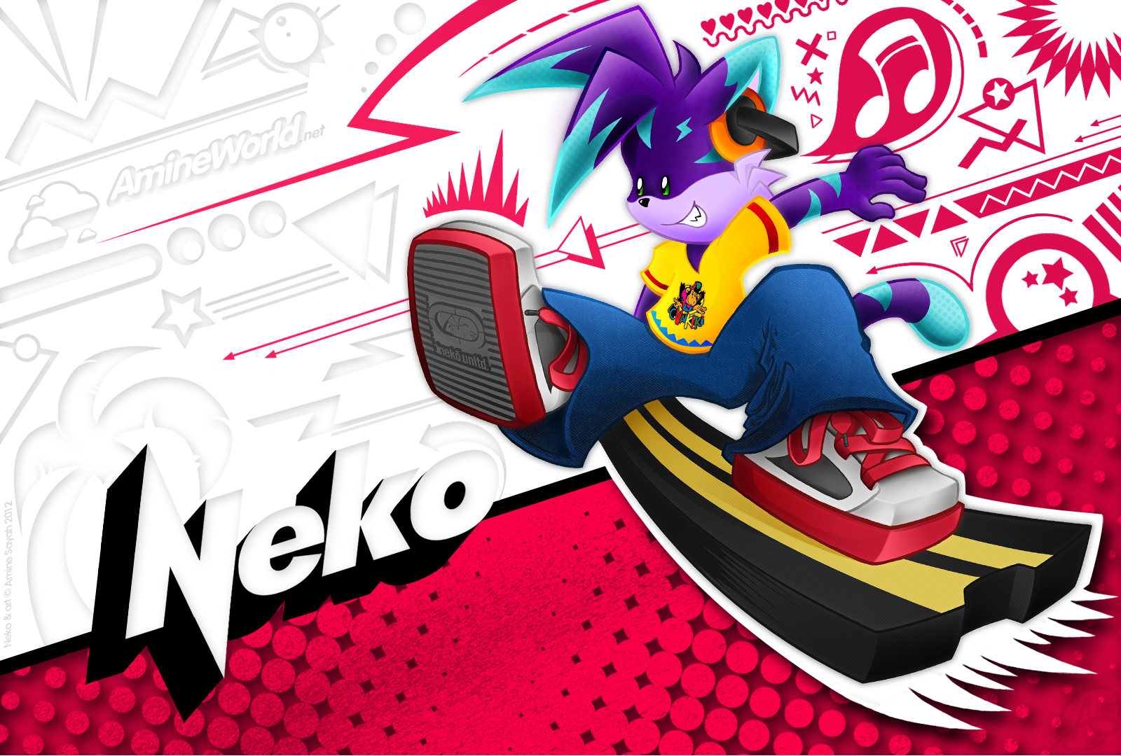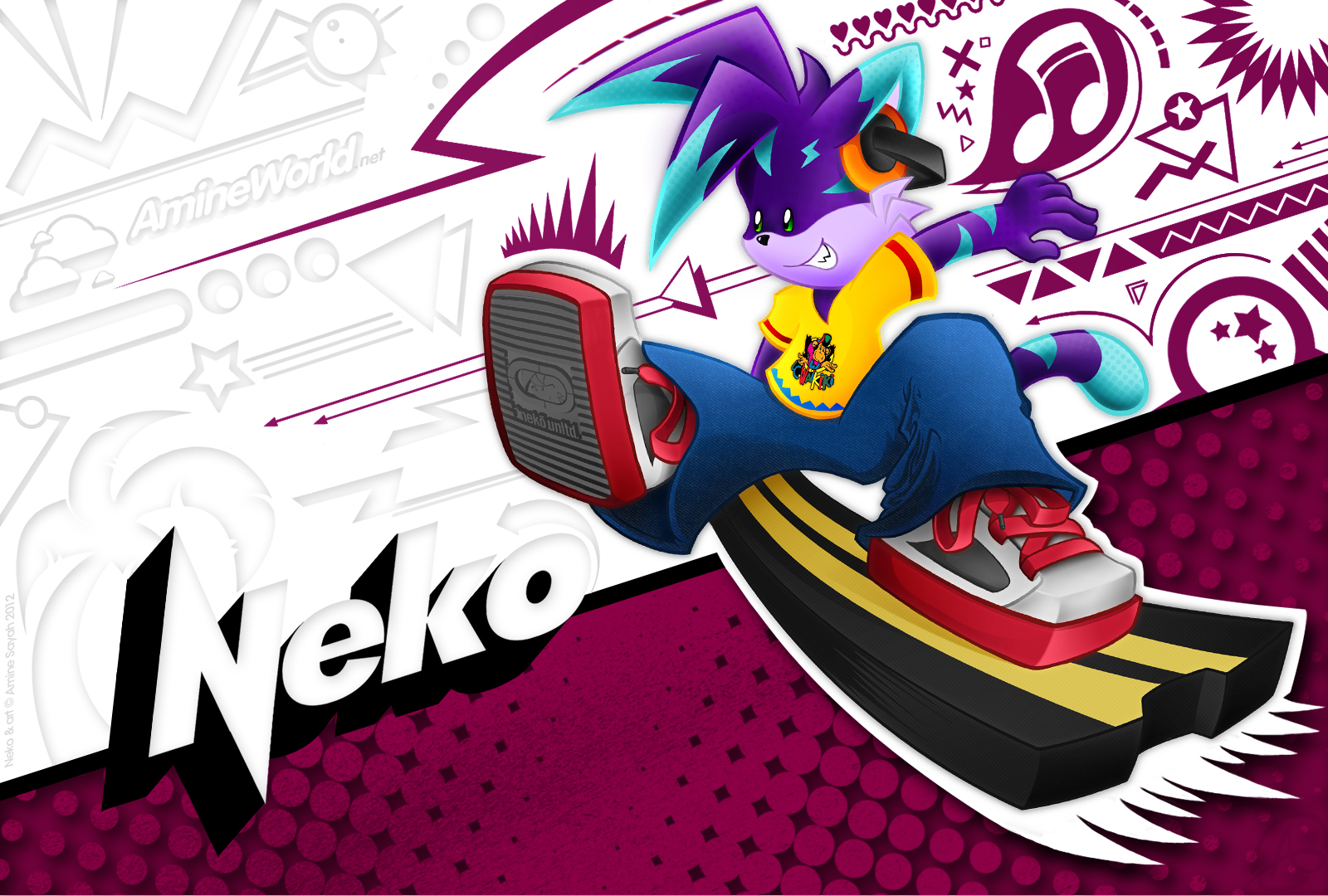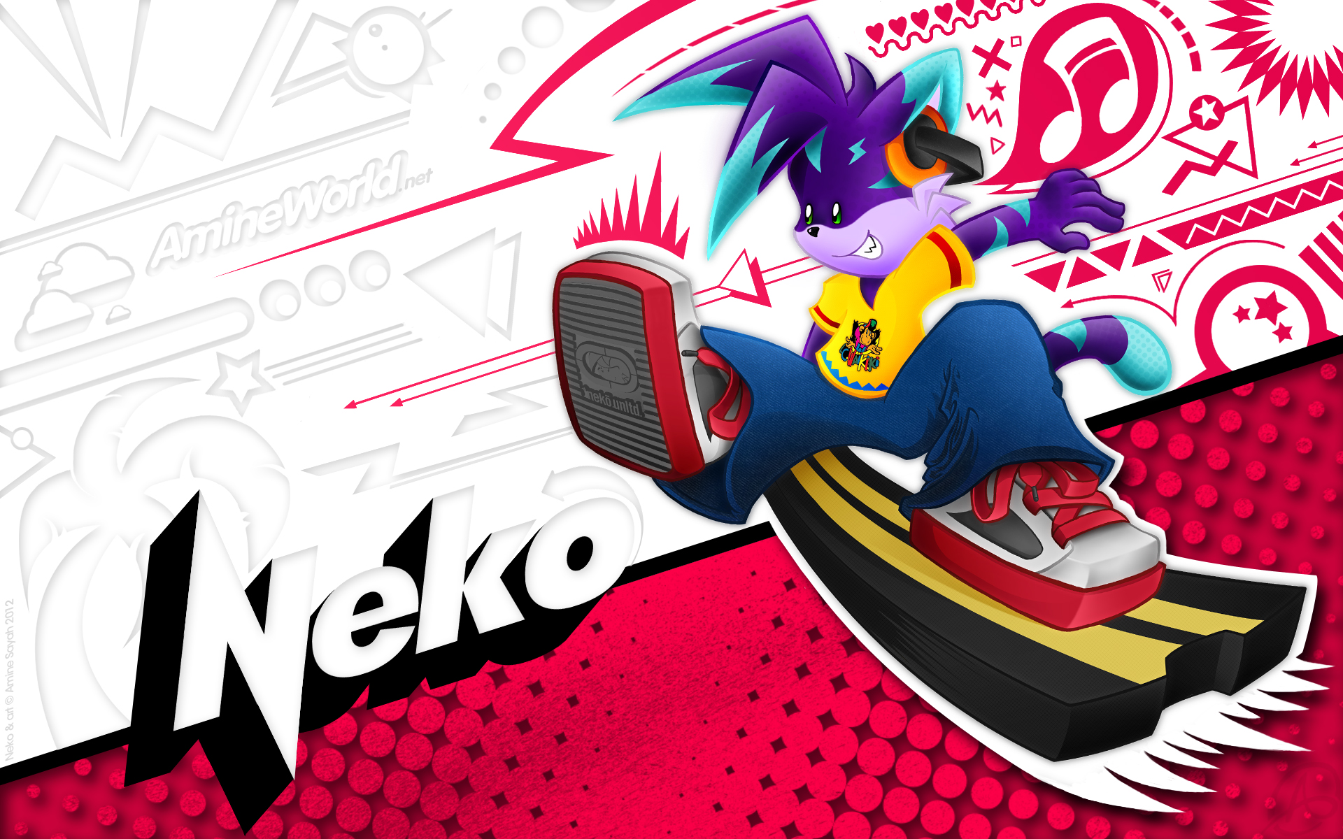 Tout comme pour Lucie, j'ai fait un fond d'écran dédié à Neko. Le style et les couleurs employées sont un vibrant hommage déguisé à la culture graphique et populaire des années 80/90 ! Sauriez-vous reconnaître les références de la palette de couleurs de Neko ?? :)