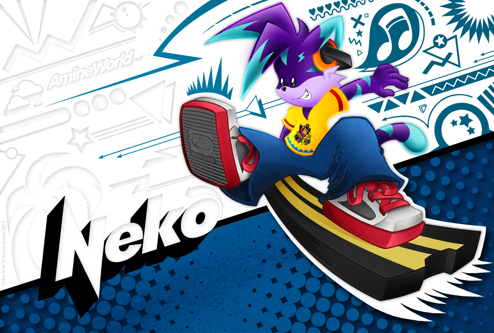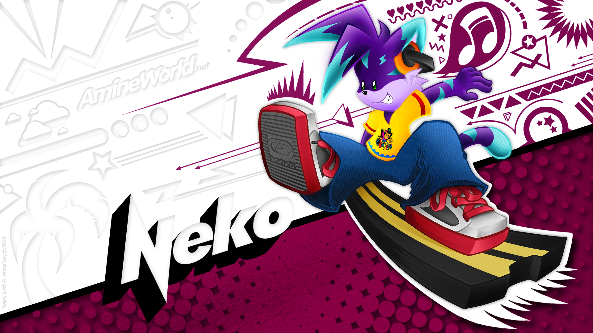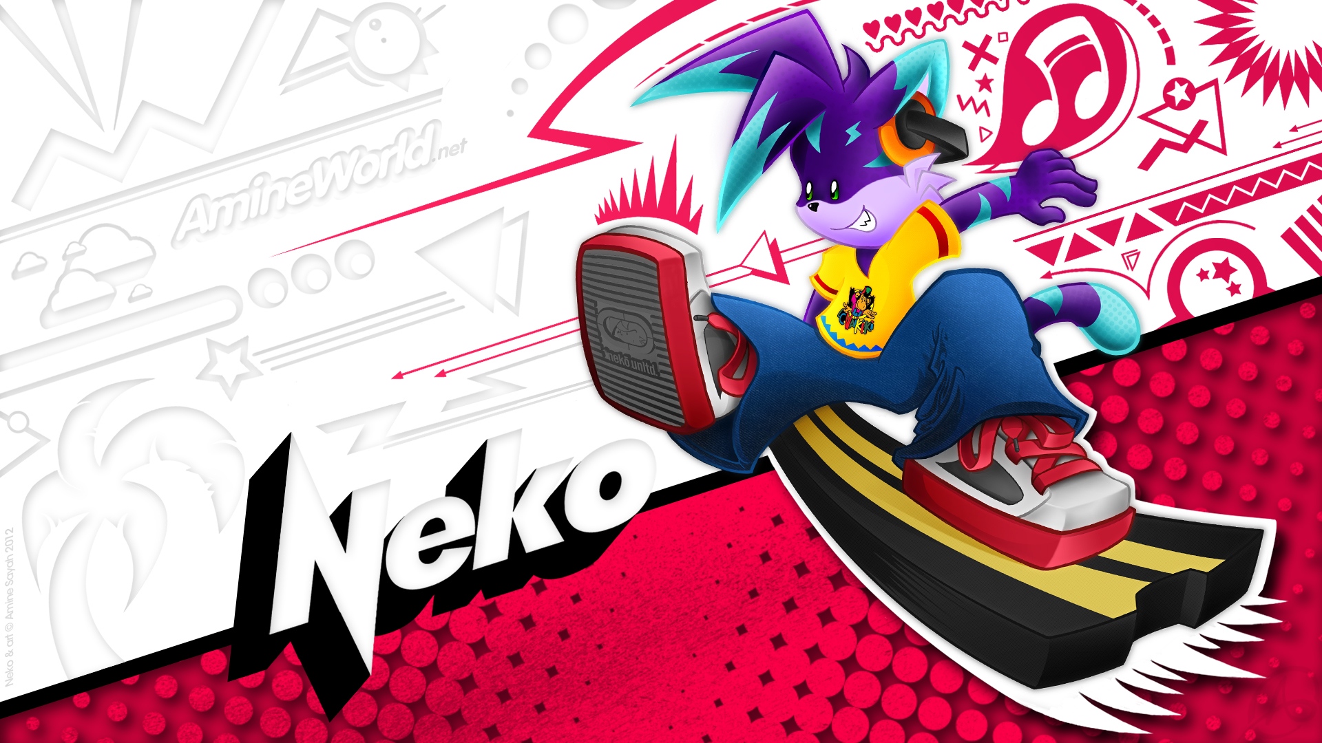 Tout comme pour Lucie, j'ai fait un fond d'écran dédié à Neko. Le style et les couleurs employées sont un vibrant hommage déguisé à la culture graphique et populaire des années 80/90 ! Sauriez-vous reconnaître les références de la palette de couleurs de Neko ?? :)