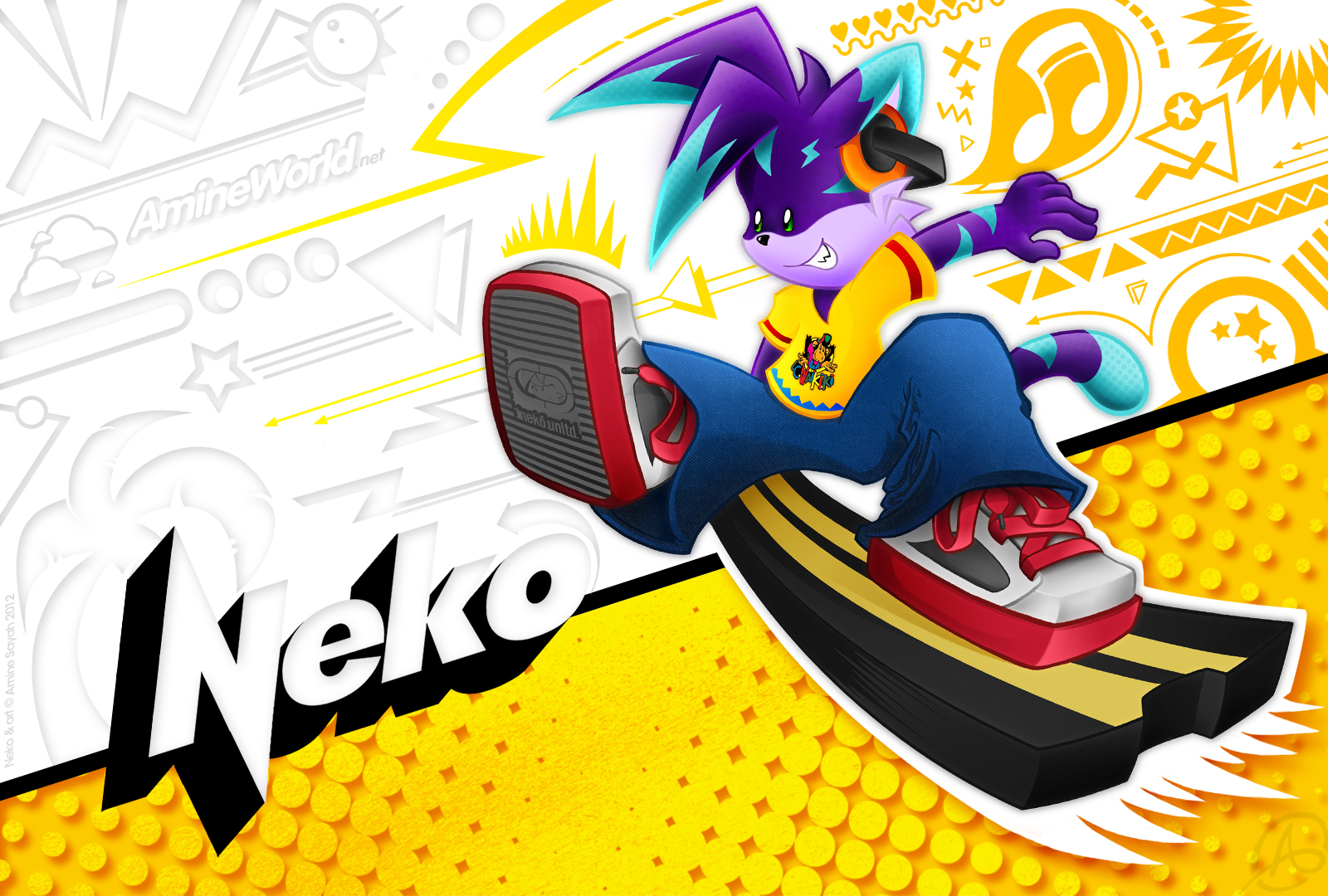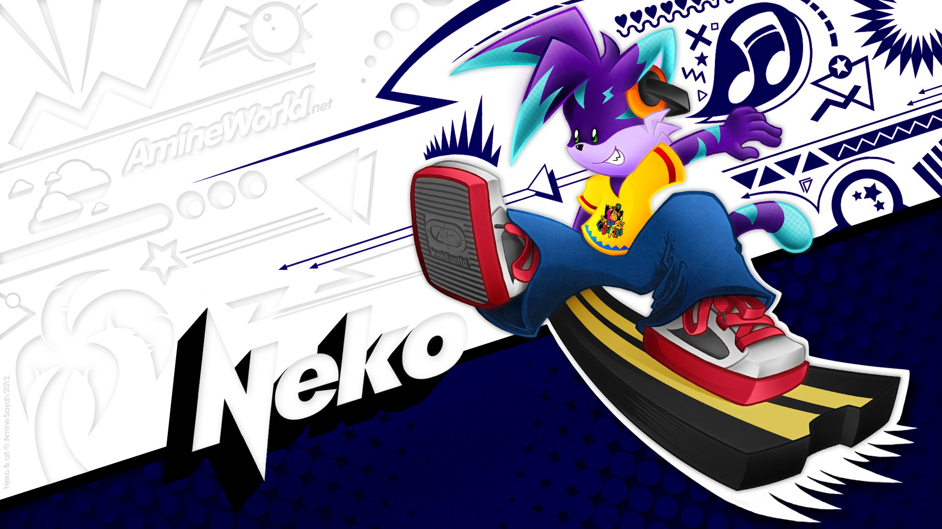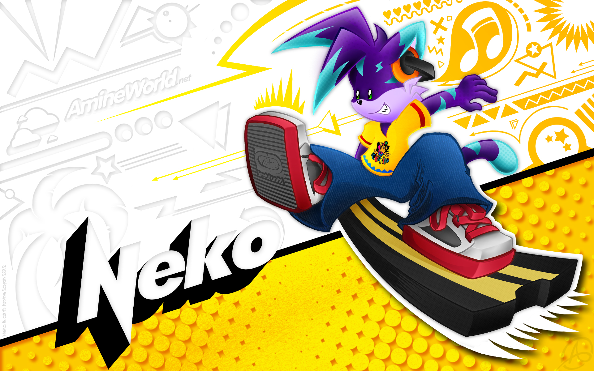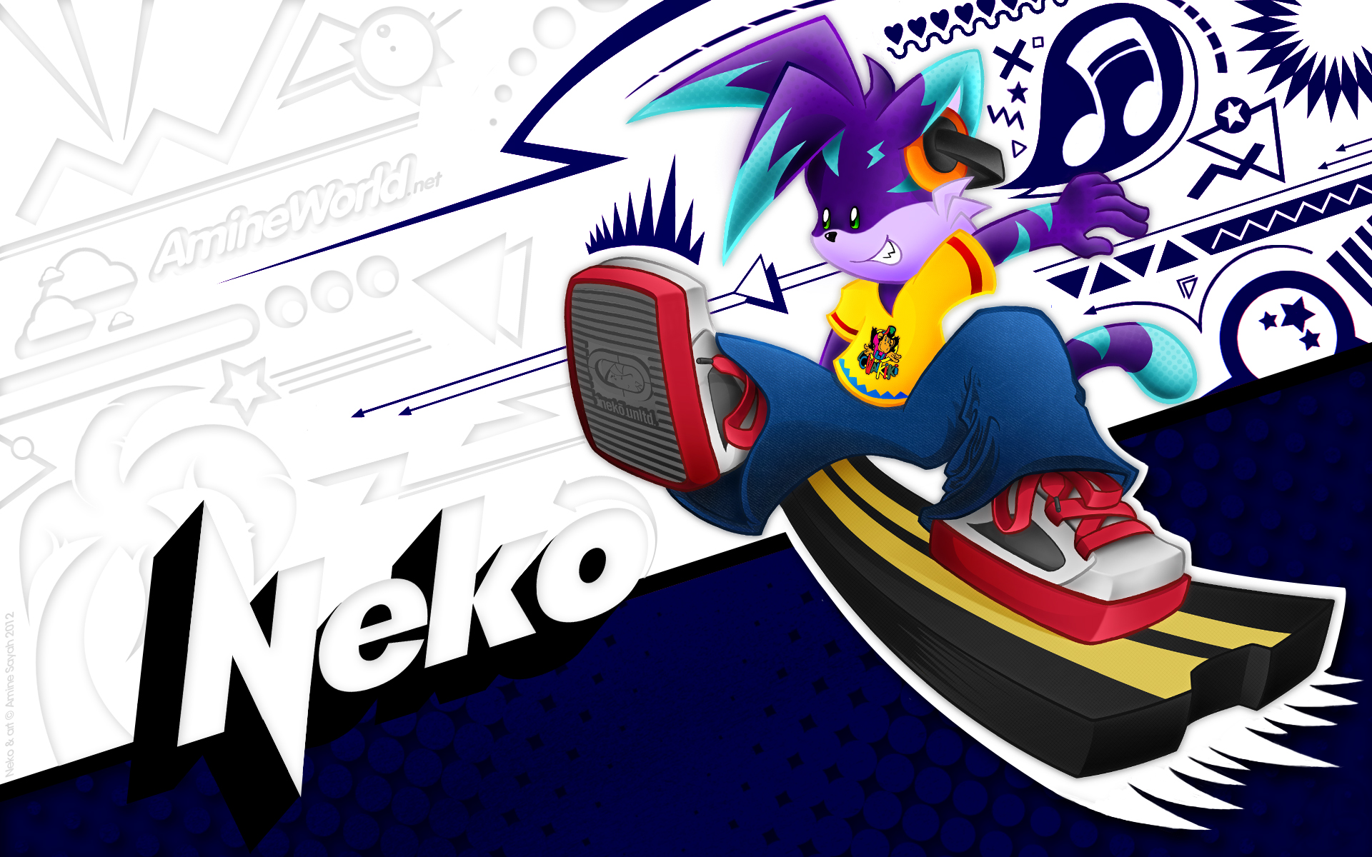 Tout comme pour Lucie, j'ai fait un fond d'écran dédié à Neko. Le style et les couleurs employées sont un vibrant hommage déguisé à la culture graphique et populaire des années 80/90 ! Sauriez-vous reconnaître les références de la palette de couleurs de Neko ?? :)